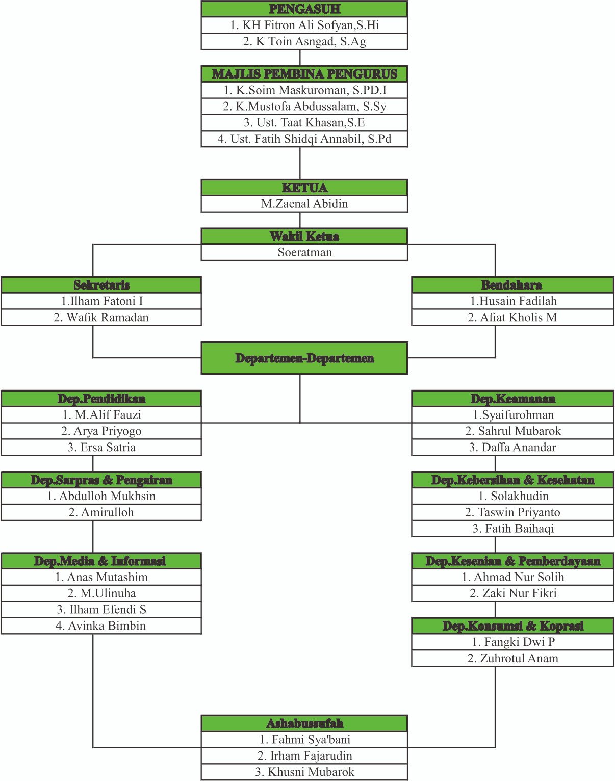 Ini Adalah Struktur organisasi pengurus dan pengasuh pondok pesantren Annahl Kutasari Purbalingga